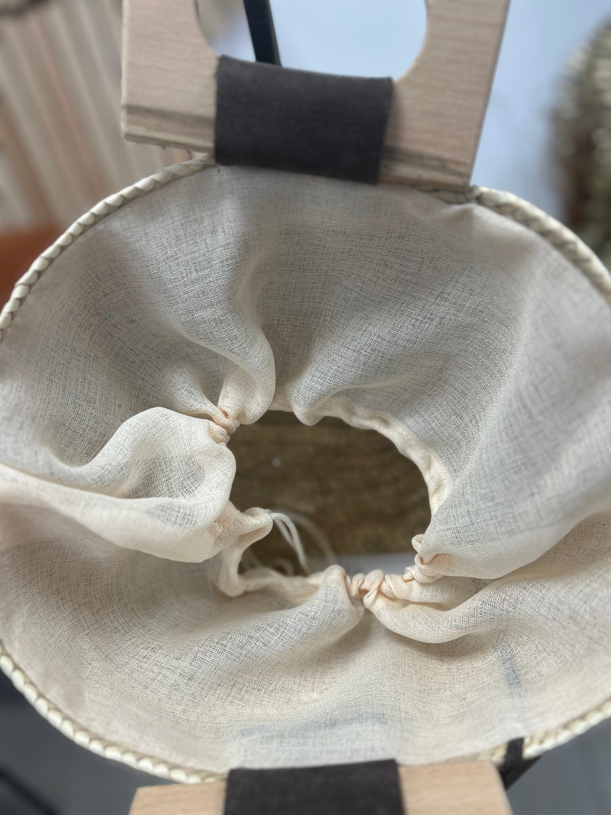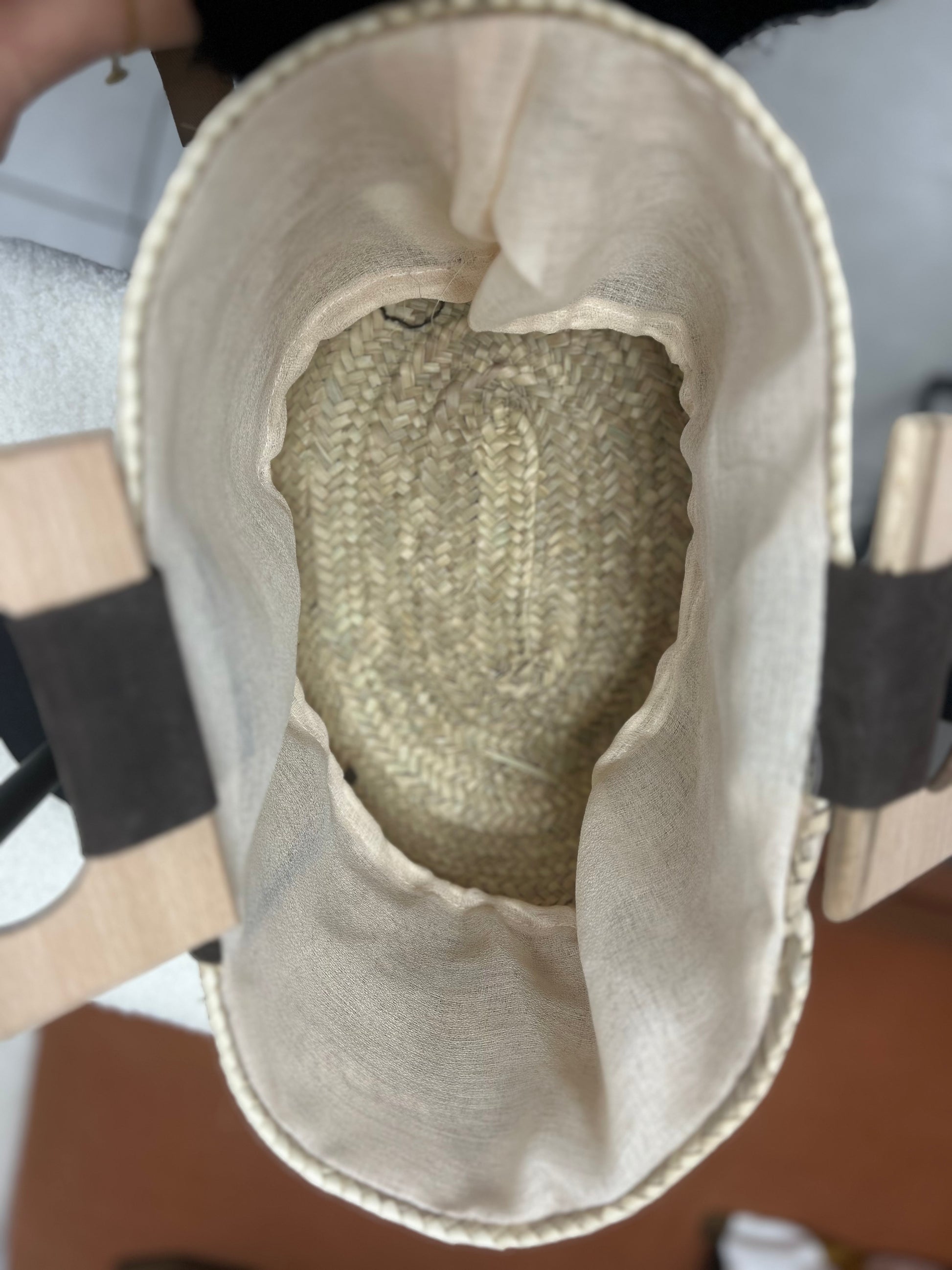 Ce panier en osier, fabriqué à la main en Tunisie, incarne le savoir-faire artisanal et l’authenticité.