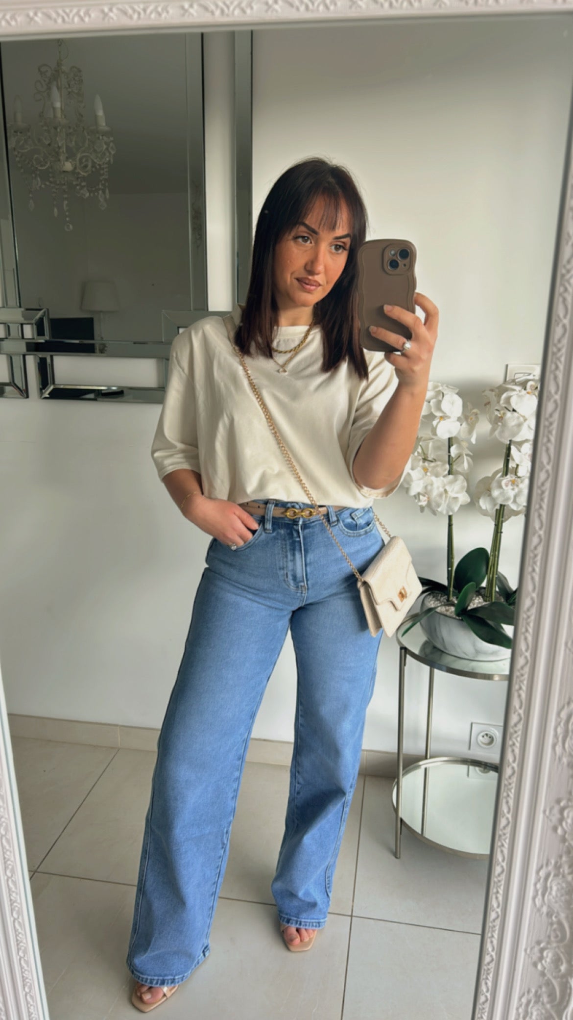 Idéal pour un look casual-chic, ce t-shirt beige avec épaulettes est une pièce essentielle à porter seule ou sous une veste pour une touche de style italienne.